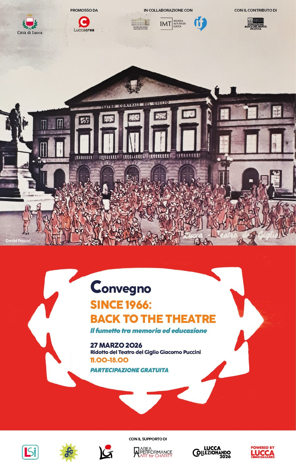 In occasione del sessantesimo anniversario di Lucca Comics & Games (27 – 29 marzo), il ridotto del Teatro del Giglio Giacomo Puccini ospiterà, venerdì 27 marzo 2026, la giornata di studi: Since 1966: Back to the Theatre – Il Fumetto tra memoria ed educazione.