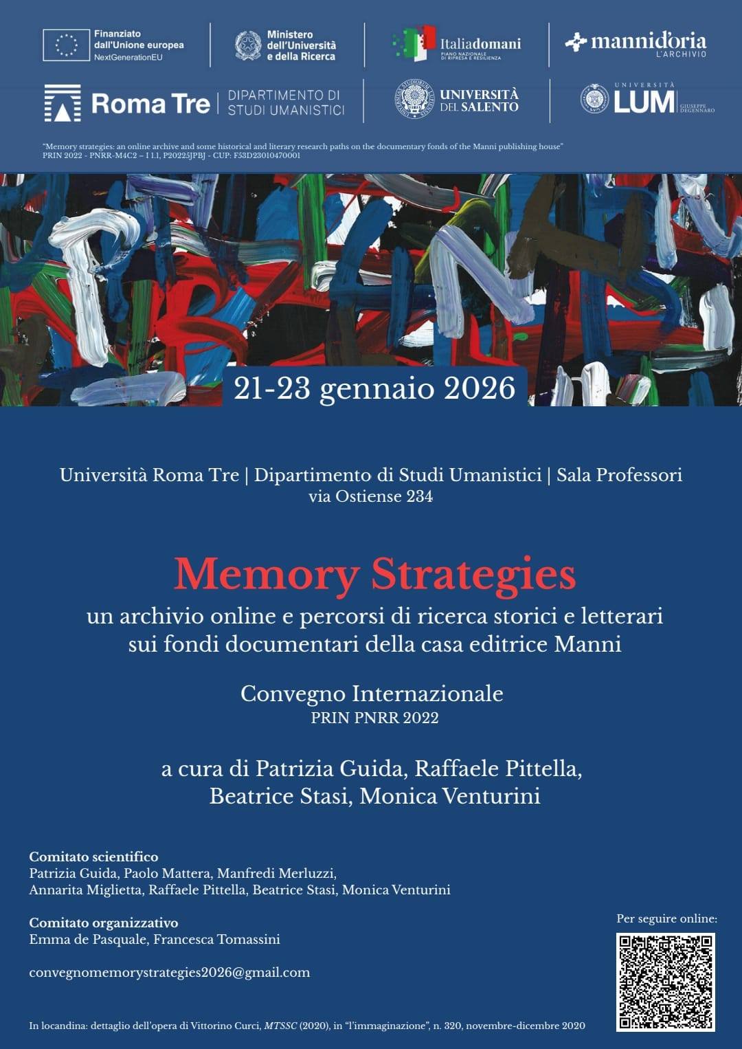 Convegno: MEMORY STRATEGIES. Un archivio online e percorsi di ricerca storici e letterari a partire dall’Archivio della casa editrice Manni