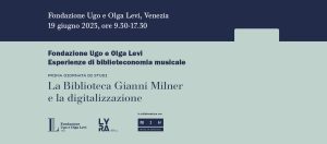 19 giugno 2023, ore 9:30/17:30: Venezia, Palazzo Giustinian Lolin Giornata di studio dedicata al patrimonio documentale e bibliografico musicale e sulle prospettive di sviluppo apertesi con la digitalizzazione presso Fondazione Ugo e Olga Levi onlus di Venezia.